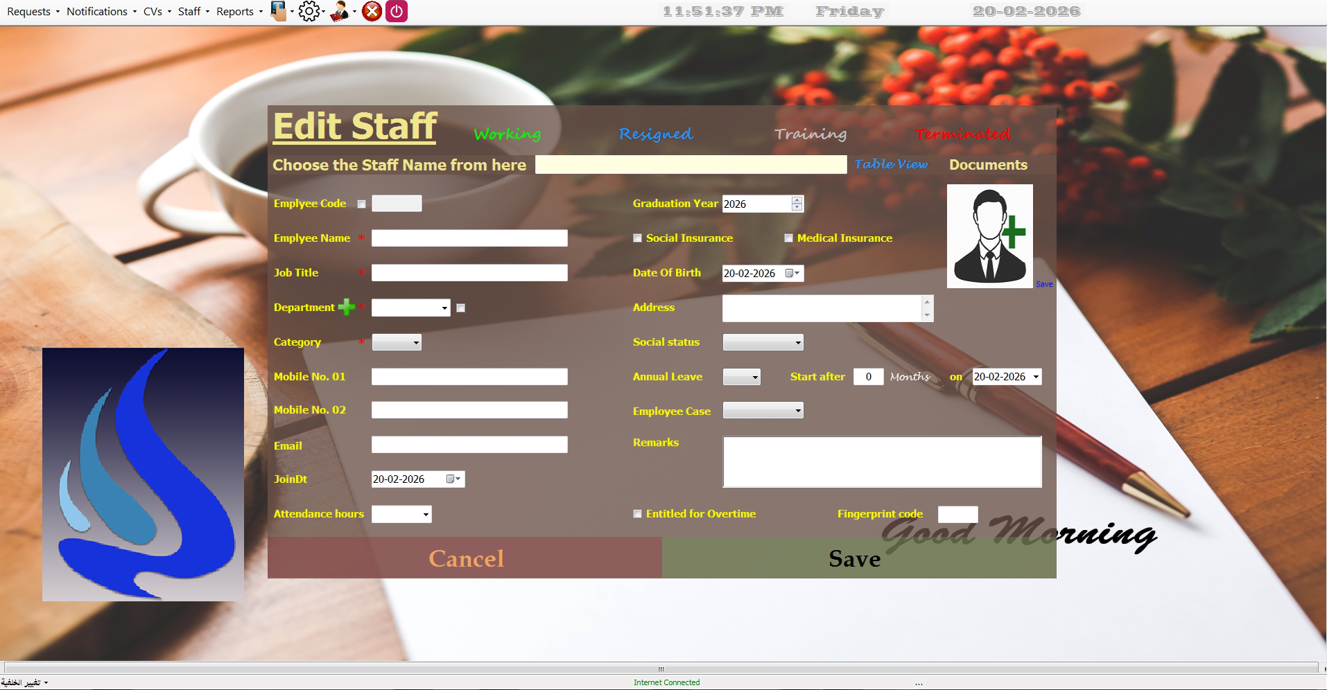 A Windows application designed to streamline HR processes, manage employee records, and track schedules